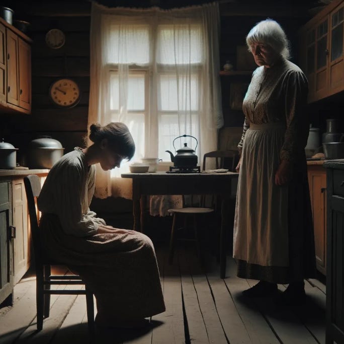But her Aunt Ella, the clan matriarch, confronts her with the rumors circulating through the village. Katie, caught off guard and overwhelmed, confesses the truth.